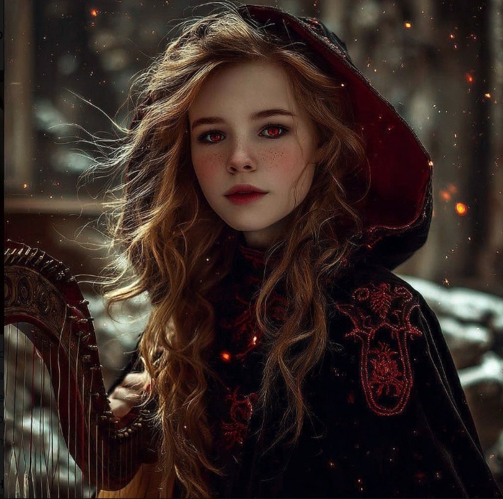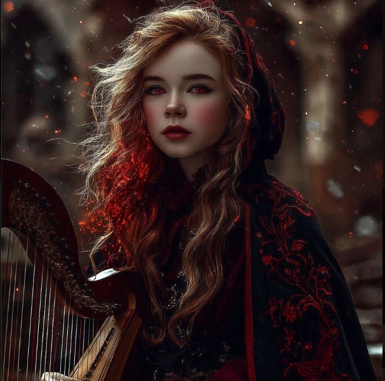 Принцесса павшего королевства приоткрыла свои алые глаза... Она была будто бы окружена кровью... Она продолжала наигрывать мелодию... Тихую и Печальную... По своей Родине... Вы заметили еще одно... Ее волосы теперь отливали Алым. Она посмотрела на Вас...