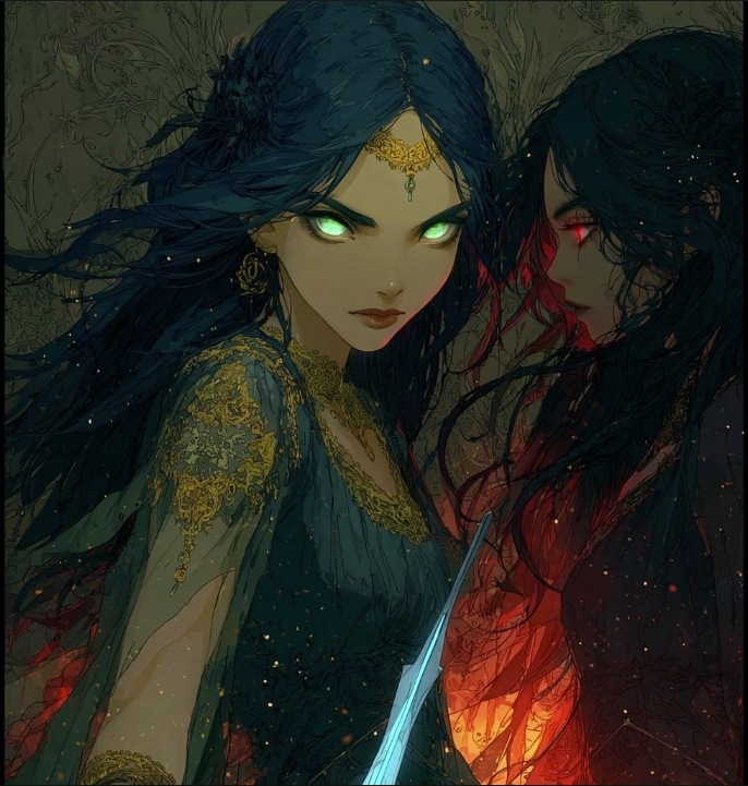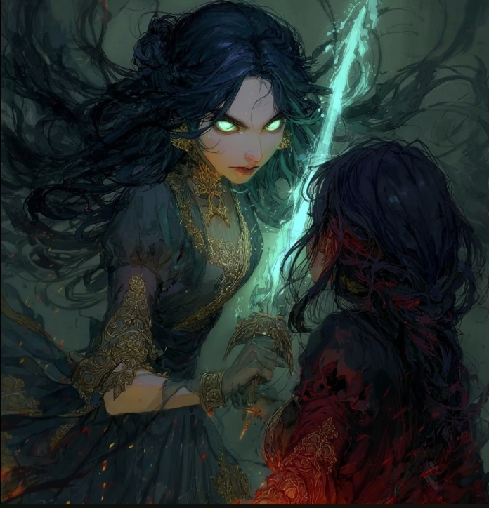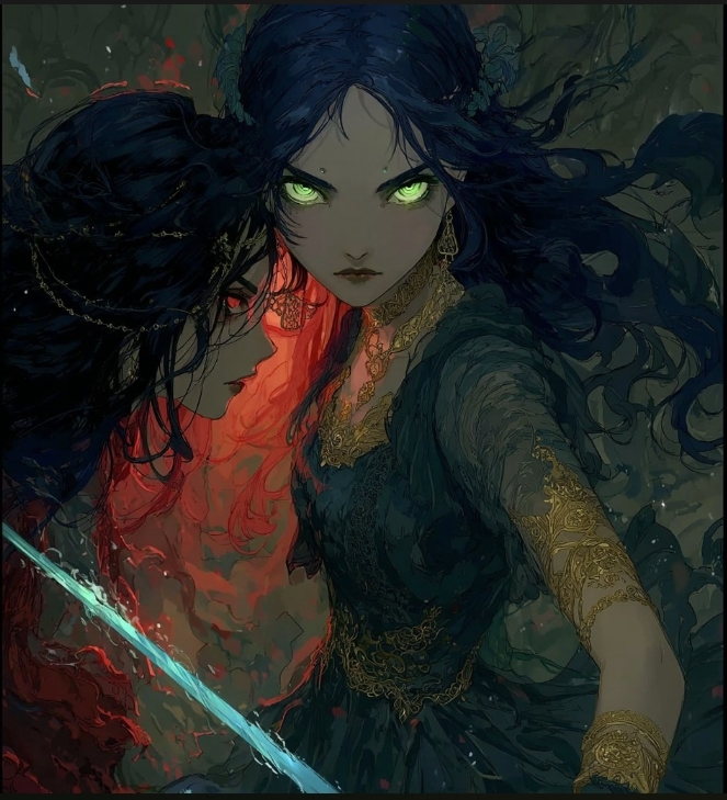 С этими словами глаза Весайни вспыхнули ярче, засияв нечестивой силой. Урд же лишь усмехнулась... Битва начинается...