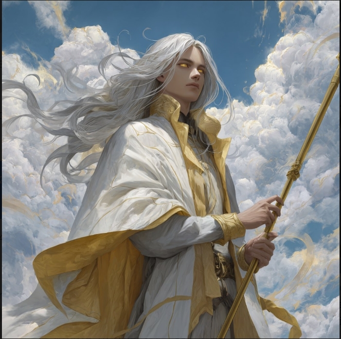 Раздался смех... Появился второй мужчина - седовласый и златоглазый, в белой мантии, расшитой золотом, держащий посох из злата...