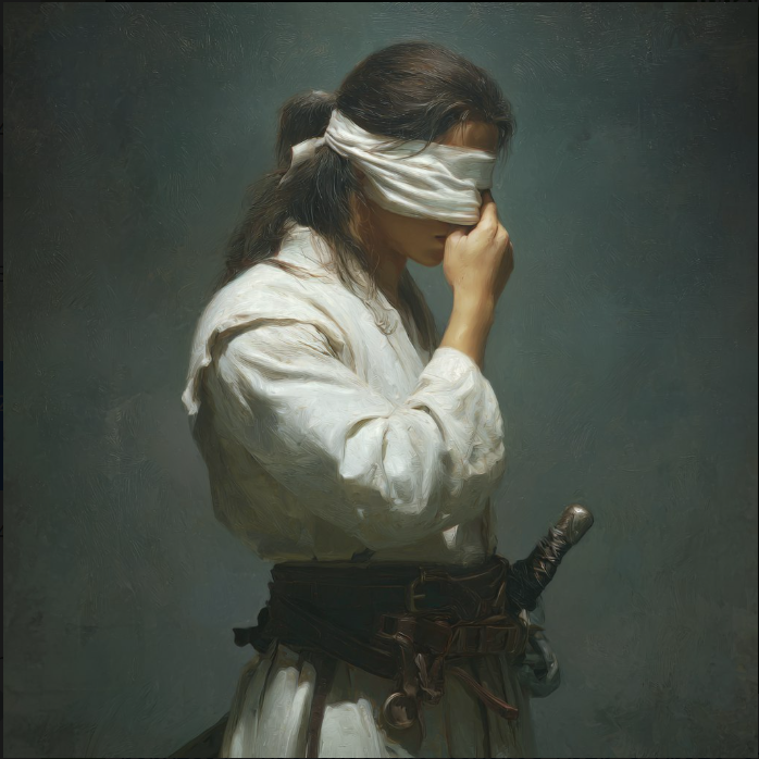 Он не выглядел примечательно. На вид - совершенно простой мужчина в белой тунике, перевязанной черным поясом, к которому крепятся ножны. На глазах - белая повязка. Темные волосы завязаны в хвост...