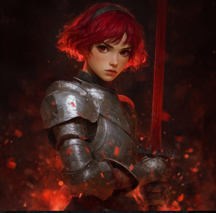 Появилось двое. Первая - красноволосая девушка в латном доспехе с веселым видом...