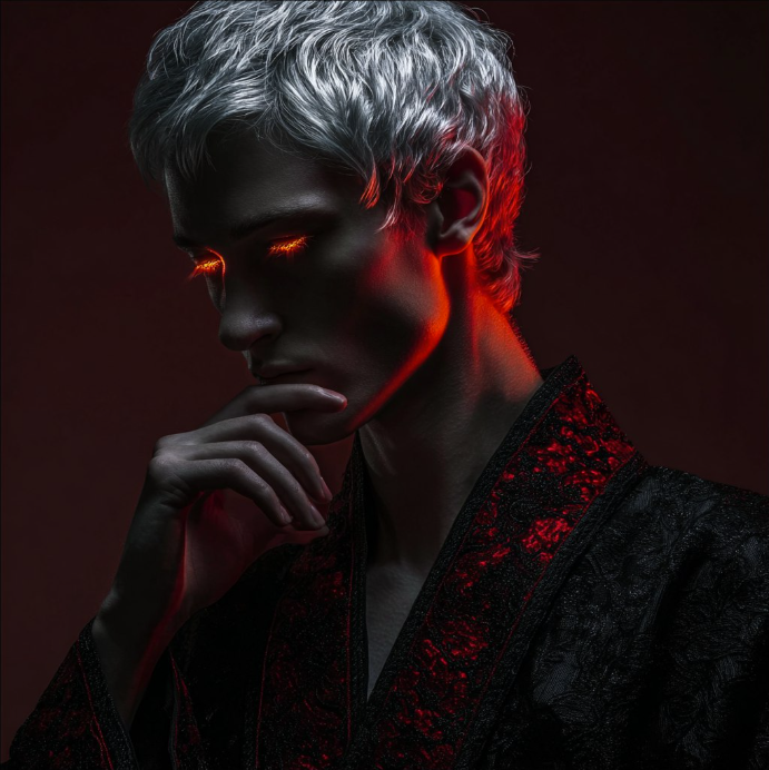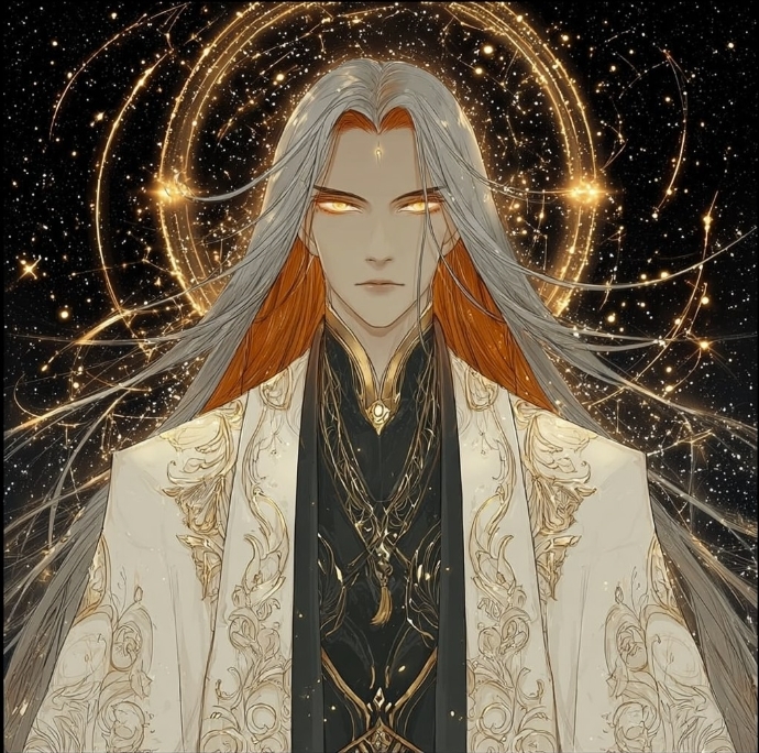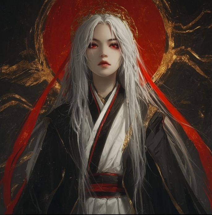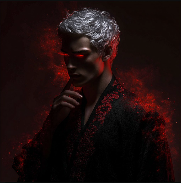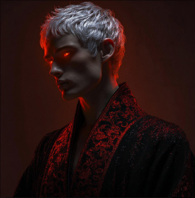 Пред вами предстали два силуэта, сформированные из красной дымки. Второй был пока сокрыт, первый же представлял собою мужчину с седыми волосами и сияющими золотыми глазами...