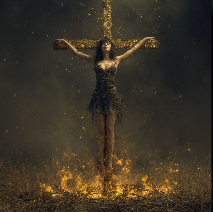Вы заметили юную девушку в позорном одеянии, привязанному к кресту, вокруг которого разложен уже зажженный хворост... Она была распята на нем. На ее лбу было выжжено Клеймо.
