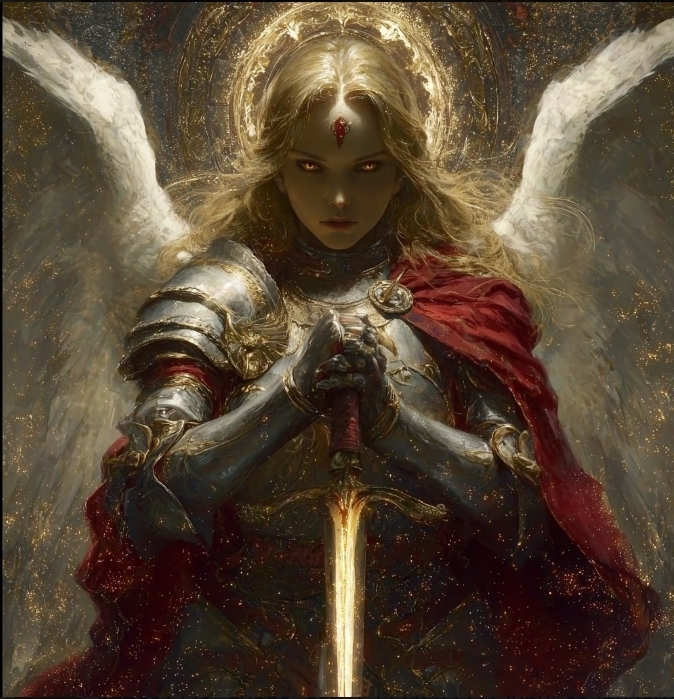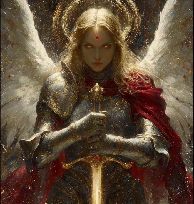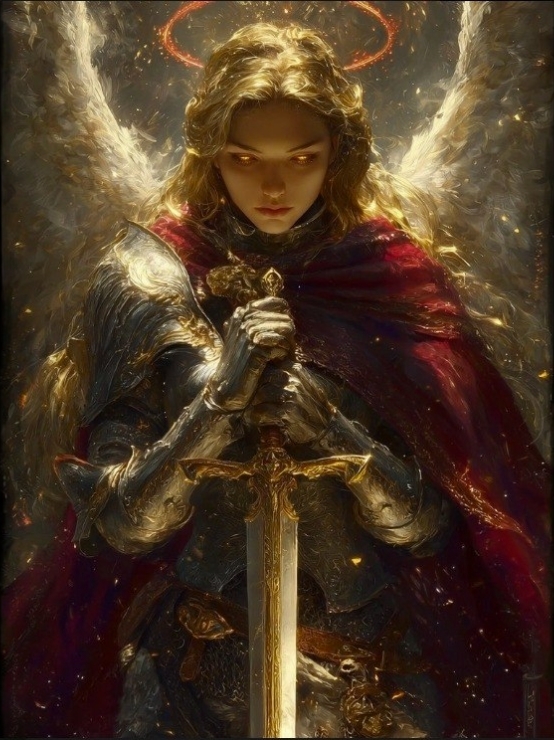 Вы увидели уже ответное видение. Та самая девушка стоит на коленях пред Истинным Ангелом - светловласым и светлоярым, чьи глаза горят ярче тысячи солнц. Он презрительно смотрит на склонившуюся девушку.