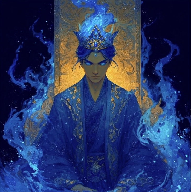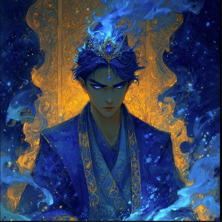 Когда же Сиддарт потянулся к Алистеру, он будто бы почуял... Но не силу Жатвы... На коготь Алистера села Синяя Бабочка... Тот усмехнулся, а следом пропал. Он не заодно с Нумерологом? Что происходит? Но у вас не было времени на эти измышления, ведь в следующий миг по всему Мирозданию прошла Волна, по сравнению с которой огонь Солнца Сиддарта... Был лишь пламенем Свечи пред Солнцем. Воцарилось Голубое Небо. Ясное, без единого Облачка. Синее пламя распространилось по округе, являя из него Мужчину с сияющими синим пламенем глазами, насыщенными синими волосами, в синей мантии, расшитой золотом, с золотисто-серебряной короной... И горящим Синим Огнем, что будто бы продолжение Его Самого...