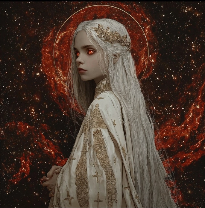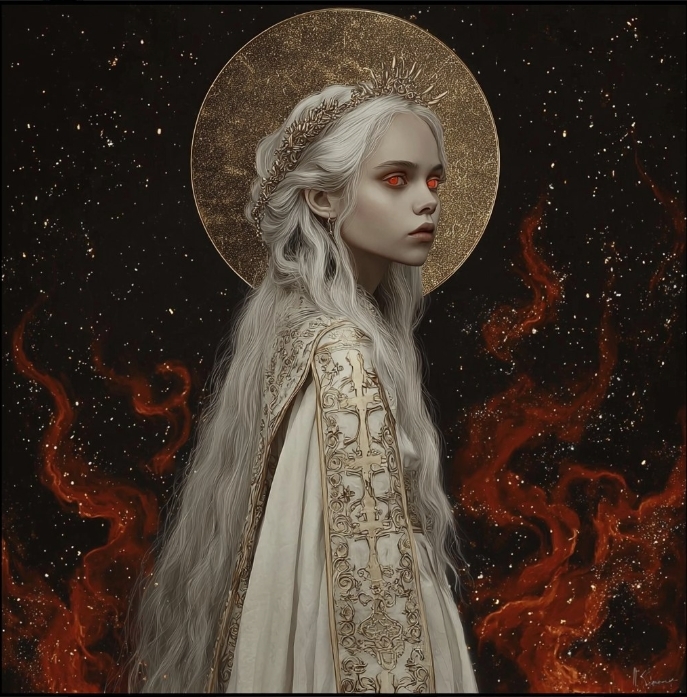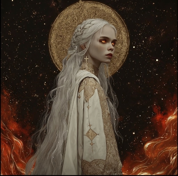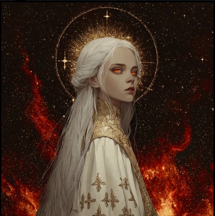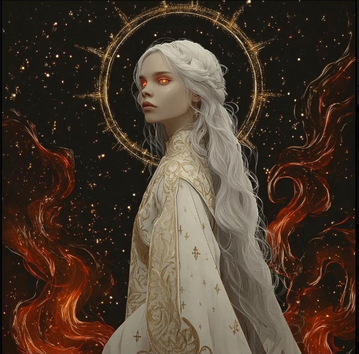 Тара начала возноситься выше... Айни увидела чрезвычайно красивое зрелище, как тысячи красно-золотых искорок взвились в небеса... Те загорелись... В огнем Захвата... Над головой Тары появился Золотой Нимб...